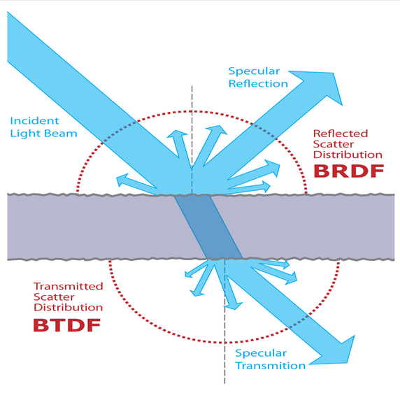 BSDF(Bidirectional Scattering Distribution Function) BSDFはBRDFを拡張して、透明または半透明の材料での光の散乱も考慮に入れます。BSDFは、入射光が表面で反射されるだけでなく、透過もする場合の挙動を記述します。数式では、