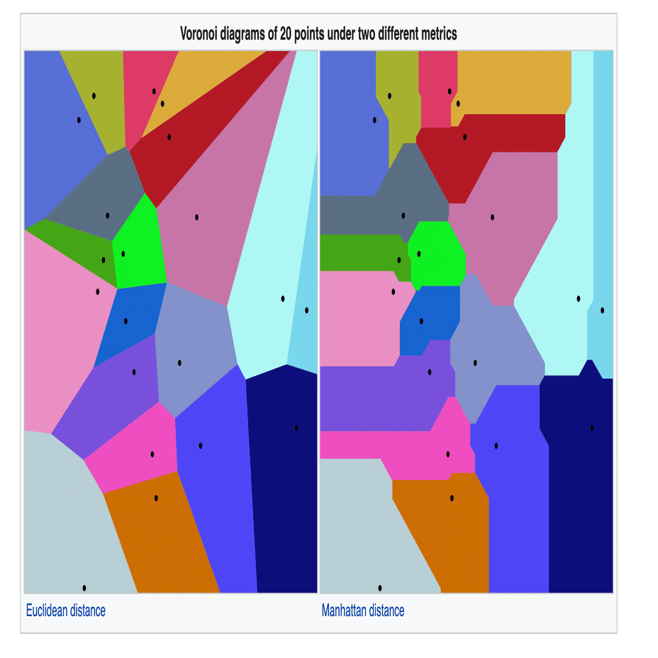 具体的には、ボロノイ図におけるある領域内の任意の点は、その領域に属する生成点に他の生成点よりも近いです。