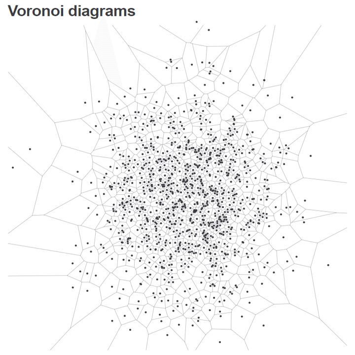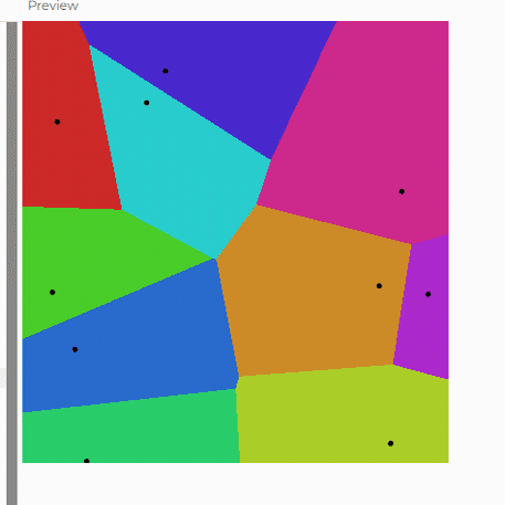 2次元の点の集合を基にして、それぞれの点に最も近い領域を生成する方法です。