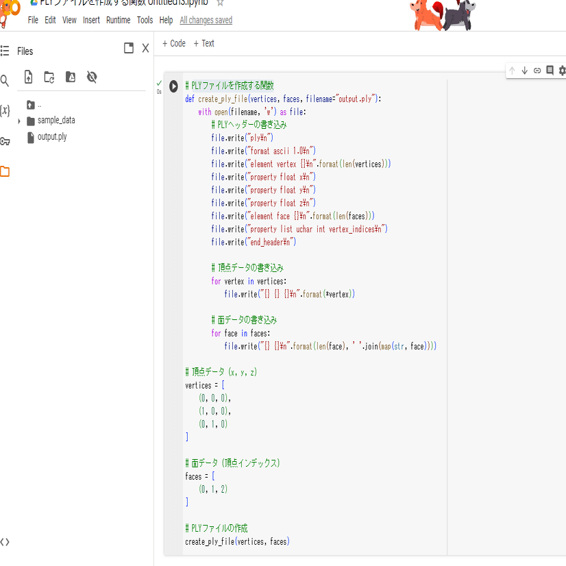 PLYフォーマット(またはポリゴンファイルフォーマット)は、3Dコンピュータグラフィックスで使用されるファイル形式の一つです。このフォーマットは、3Dモデルや3D画像の表現に使用され、主に3Dスキャナからのデータ出力や3Dモデリングソフトウェアで使われます。